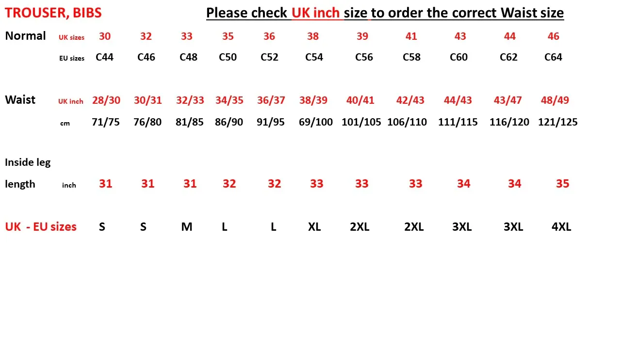 SIZES: 44-64 ( EU ), 38-58 (E), 38-58 (F), C44-C64 (Scandinavian sizes), 30-46 (UK-US)