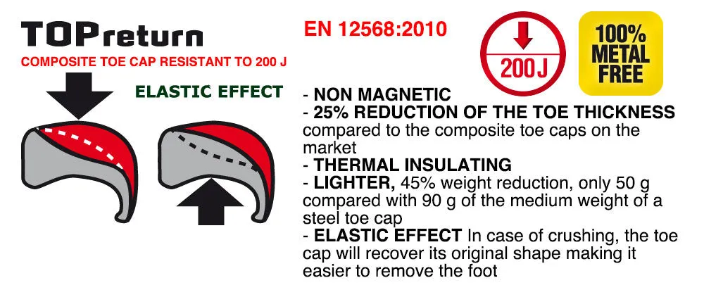 TOE CAP: non metallic TOP RETURN resistant to 200 J