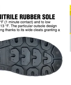 FOOTBED: EVANIT, made of EVA and nitrile special compound, with high bearing capacity and variable thickness (12mm – 8mm – 3,8mm). Thermoformed, punched and coated with highly breathable fabric. Antistatic thanks to a specific treatment on the surface and to seams made of conductive yarns