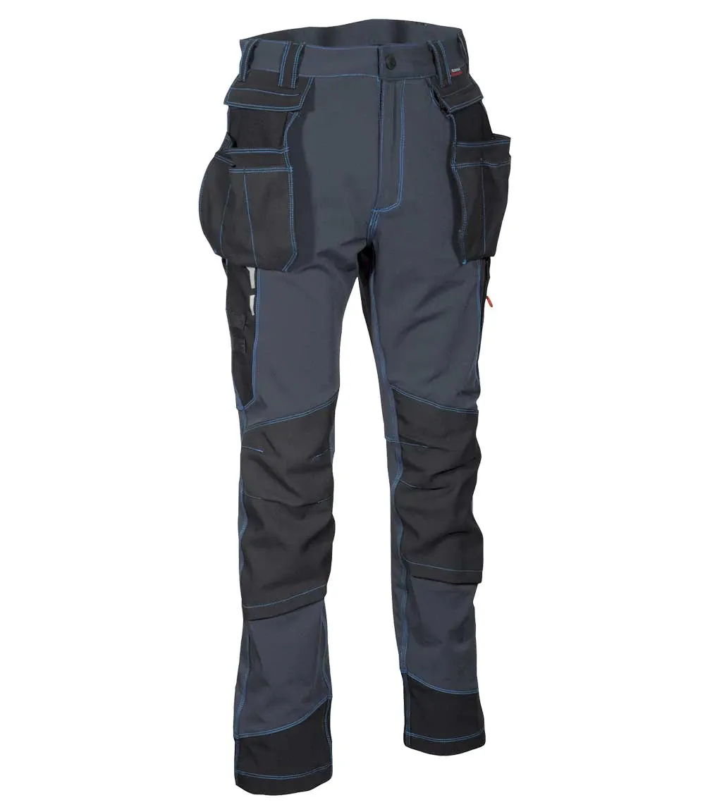 DESCRIPTION: 2 wide front pockets, double back pocket with velcro closure, hammer loop, knee and leg ergonomic design, nylon adjustable kneepad pockets, nylon external nail pockets, detachable with zip, reflex inserts, rule pocket, side pocket with double opening (with velcro and zip closure), stretch fabric.