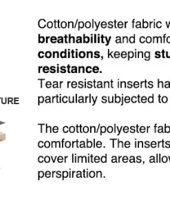 COMPOSITION: 60% cotton – 40% polyester / Stretch fabric: 60% cotton – 37% polyester – 3% elastane + abrasion resistant inserts made of 100% nylon