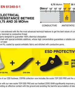 FOOTBED: ECO-TECH ESD, POLY-GREEN footbed anatomic, holed, scented, soft and comfortable, with low electric resistance. The upper layer is made of antibacterial fabric arbsorbs moisture and keeps the foot always dry