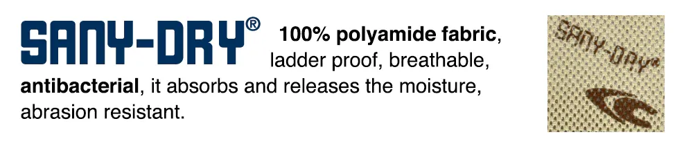 INTERNAL LINING: SANY-DRY® 100% polyester fabric, three-dimensional, breathable, antibacterial, it absorbs and releases the moisture, abrasion resistant