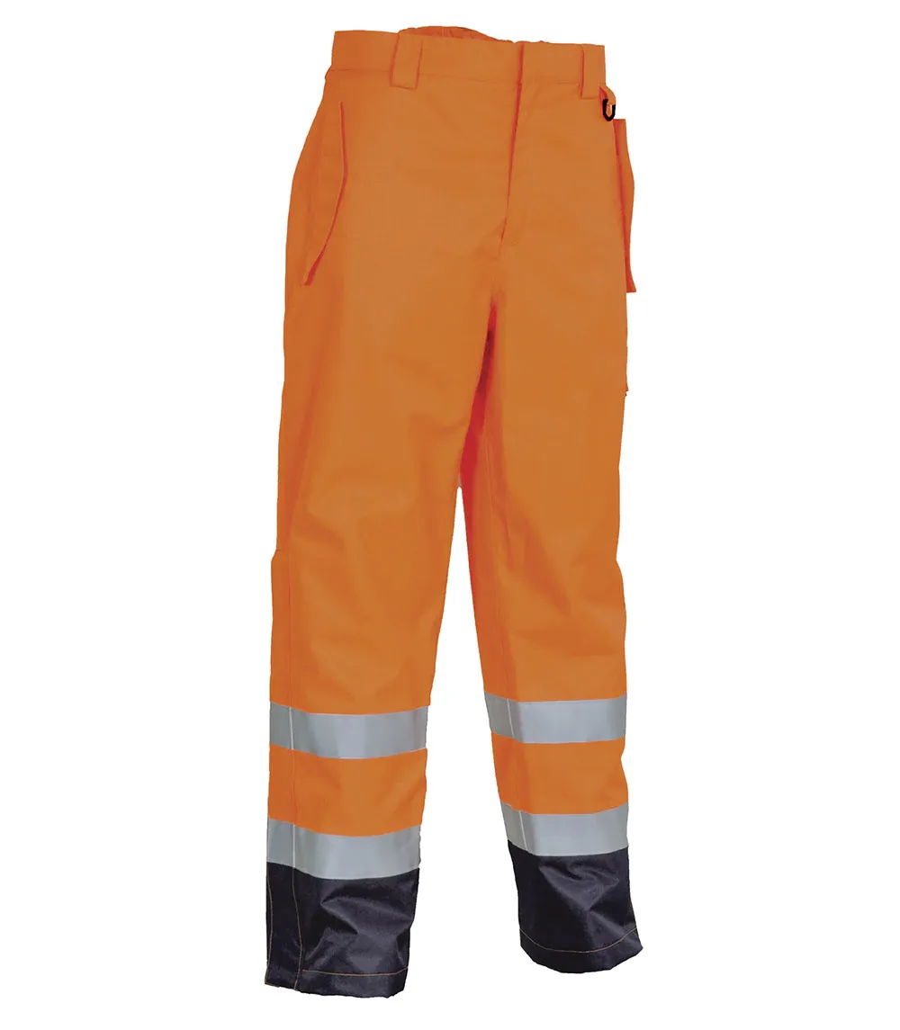 DESCRIPTION: 1 back wide pocket with flap, 1 side pocket, 2 side holes with flap, 3M™ Scotchlite™ Reflective Material flame-retardant reflex strips – 8935 Silver Fabric, bottom opening with zip, elasticated waist, pictograms standards embroidered on the side pocket, recommendable in ATEX environments, thermo welded seams, YKK® zip