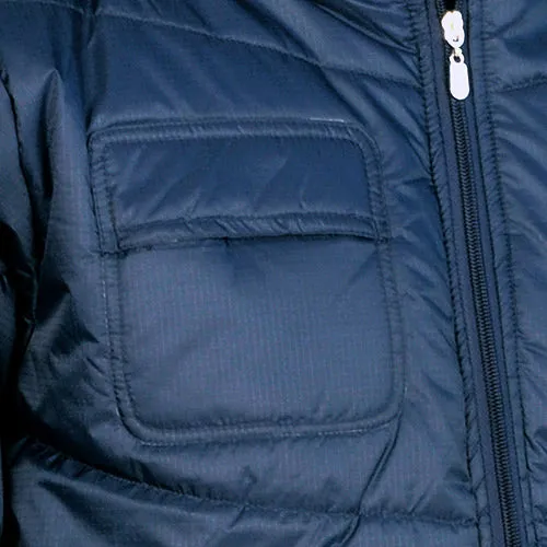 DESCRIPTION: 1 breast pocket with velcro, 2 wide front pockets with snap, elasticated waist and cuff, foldaway hood, internal pocket with zip
