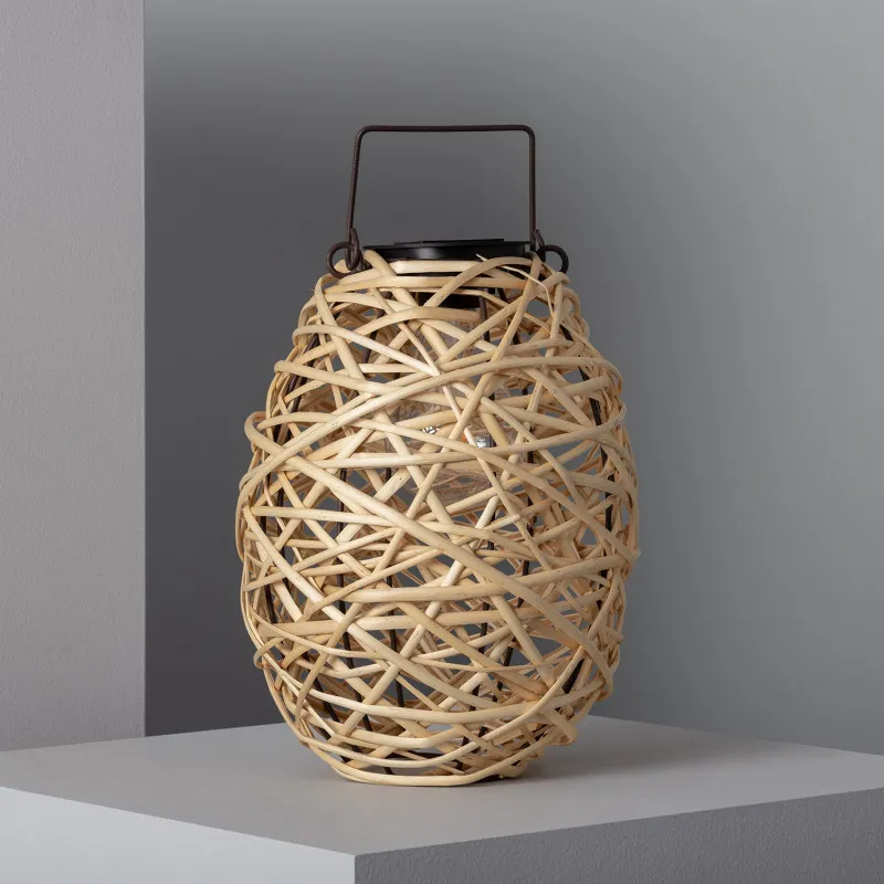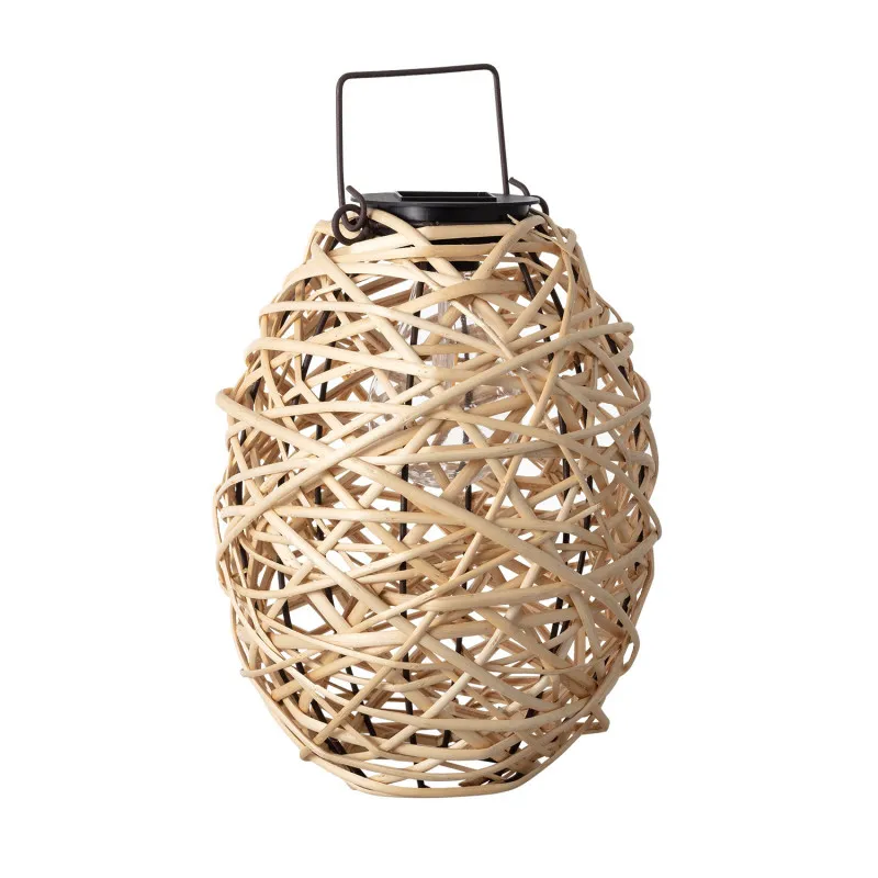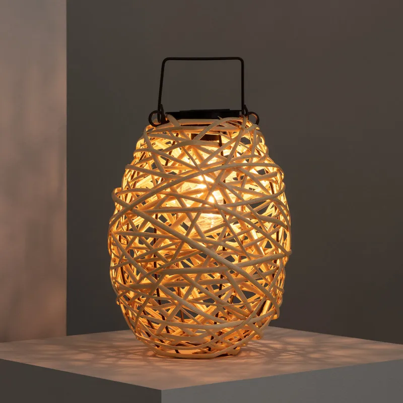 - The Edit Baihar outdoor table lamp is both stylish and practical, with a natural boho-chic design. With a metal, lantern frame, wrapped in natural rattan fibres and a metal handle. It has a built-in solar panel at the top of the lantern and needs to be placed anywhere in direct sunlight, once charged will last for up to 6 hours. In addition, it has a light sensor which automatically turns the light on when it gets dark making this an ideal choice for your outdoor spaces and great for a summer evening in the garden, parties, BBQ’s.