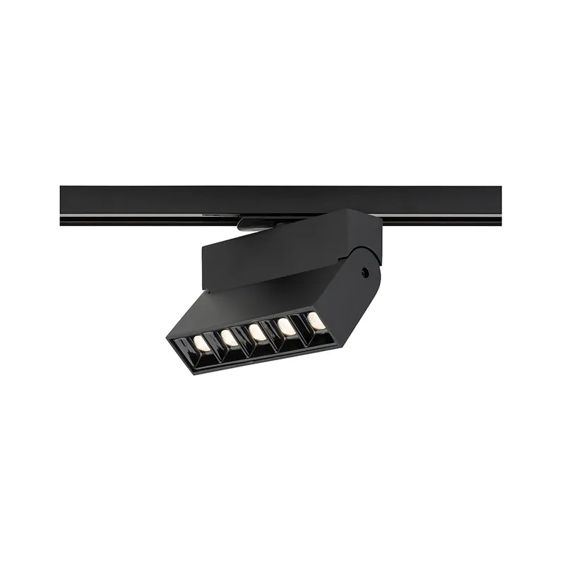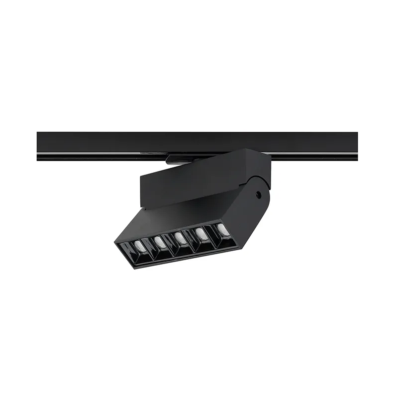 - Tiltable aluminium track light in a black finish