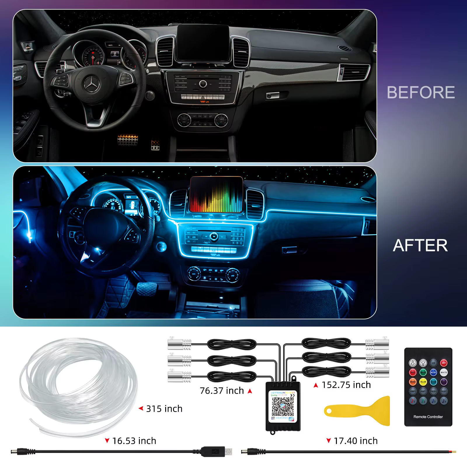 LED Car Interior Ambient Strip Lights RGB Fiber Optic Atmosphere Neon Lighting Kit W/ APP Remote Control Auto Decorative Lamps