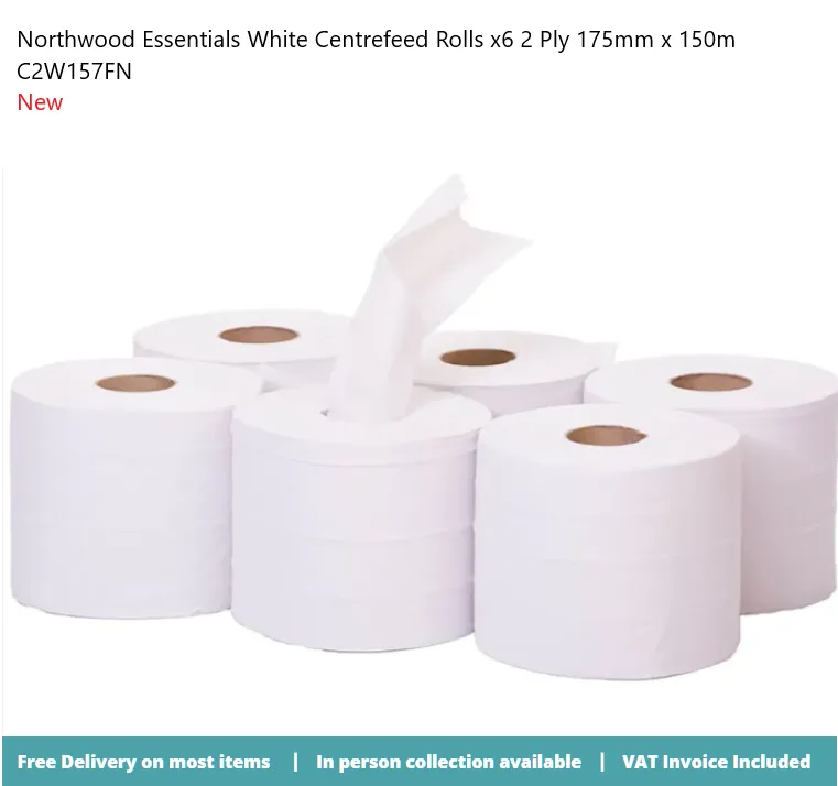 Be the first to review “Northwood Embossed Essentials White Centrefeed Rolls 2 Ply 175mm x 150m X6 2CW126E” Cancel reply