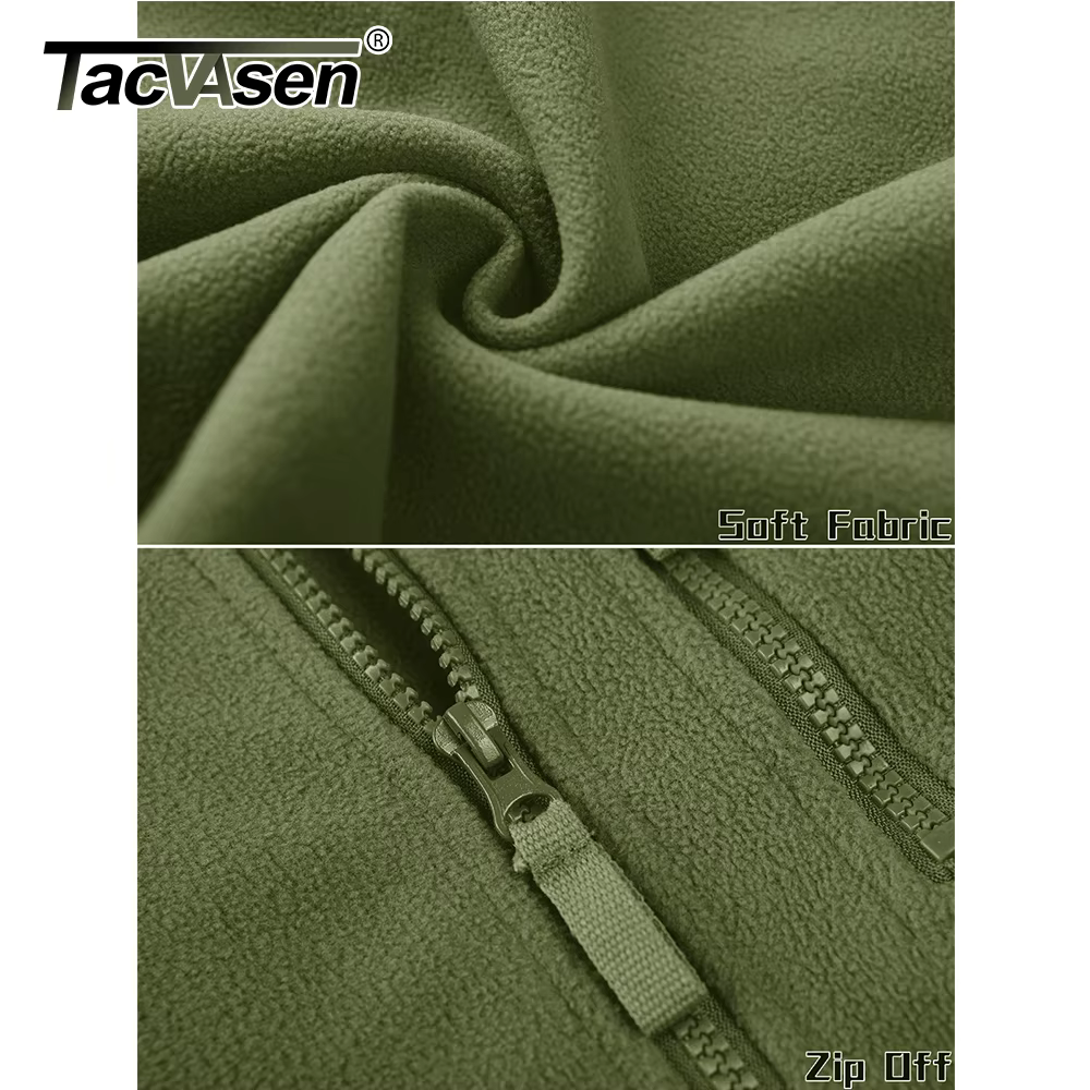 TACVASEN Full Zip Up Tactical Green Fleece Jacket Thermal Warm Work Coats Mens Pockets Safari Jacket Hiking Outwear Windbreaker