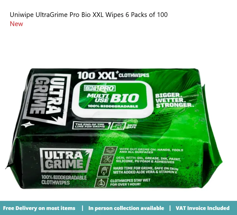 Uniwipe UltraGrime Pro Bio XXL Wipes – 6 Packs of 100